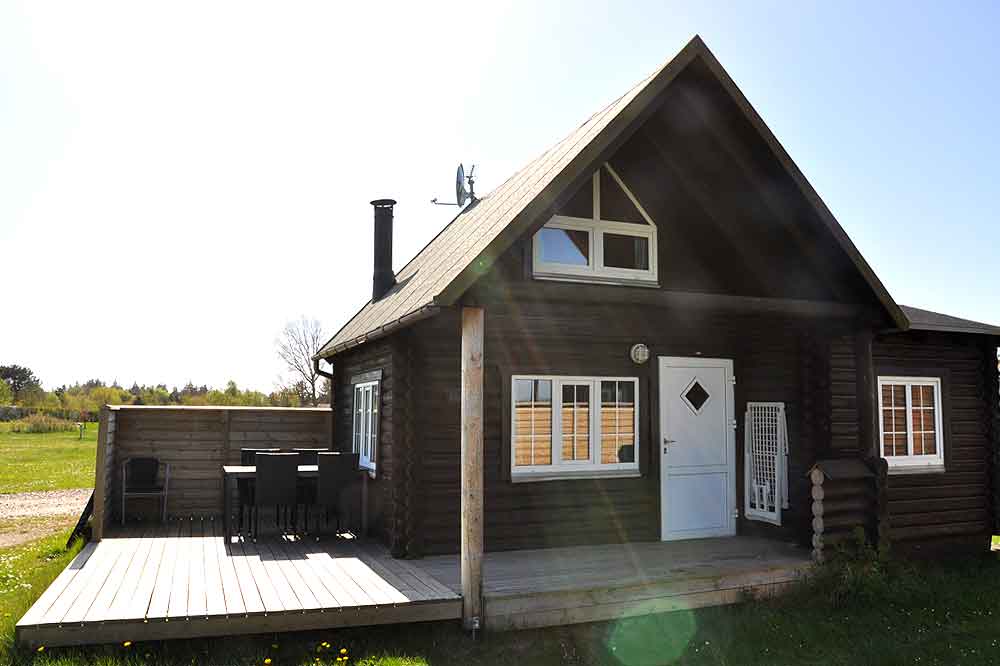 Die Hütte stammt von ca. 1985 mit Wohnzimmer, Schlafsofa, Essplatz, Kinderkabine mit Etagenbett (190 cm), Kochnische mit 2 Kochplatten, kleiner Ofen, Kaffeemaschine, Kühlschrank. Wasser kann im Wasserkocher erhitzt werden. Nutzung der dicht gelegenen Sanitärgebäude des Campingplatzes mit Zahlungsdusche und Toiletten.